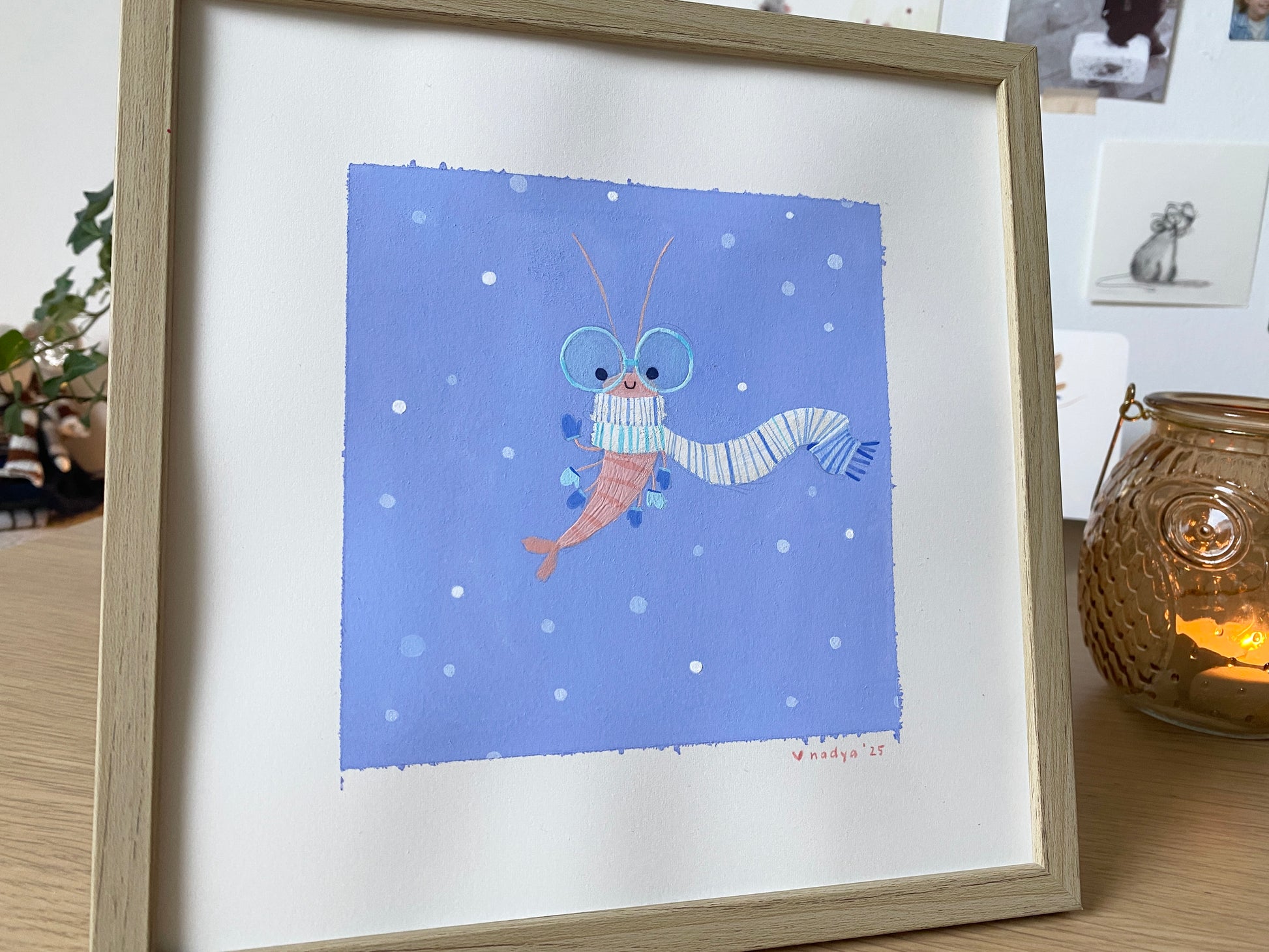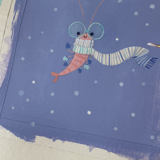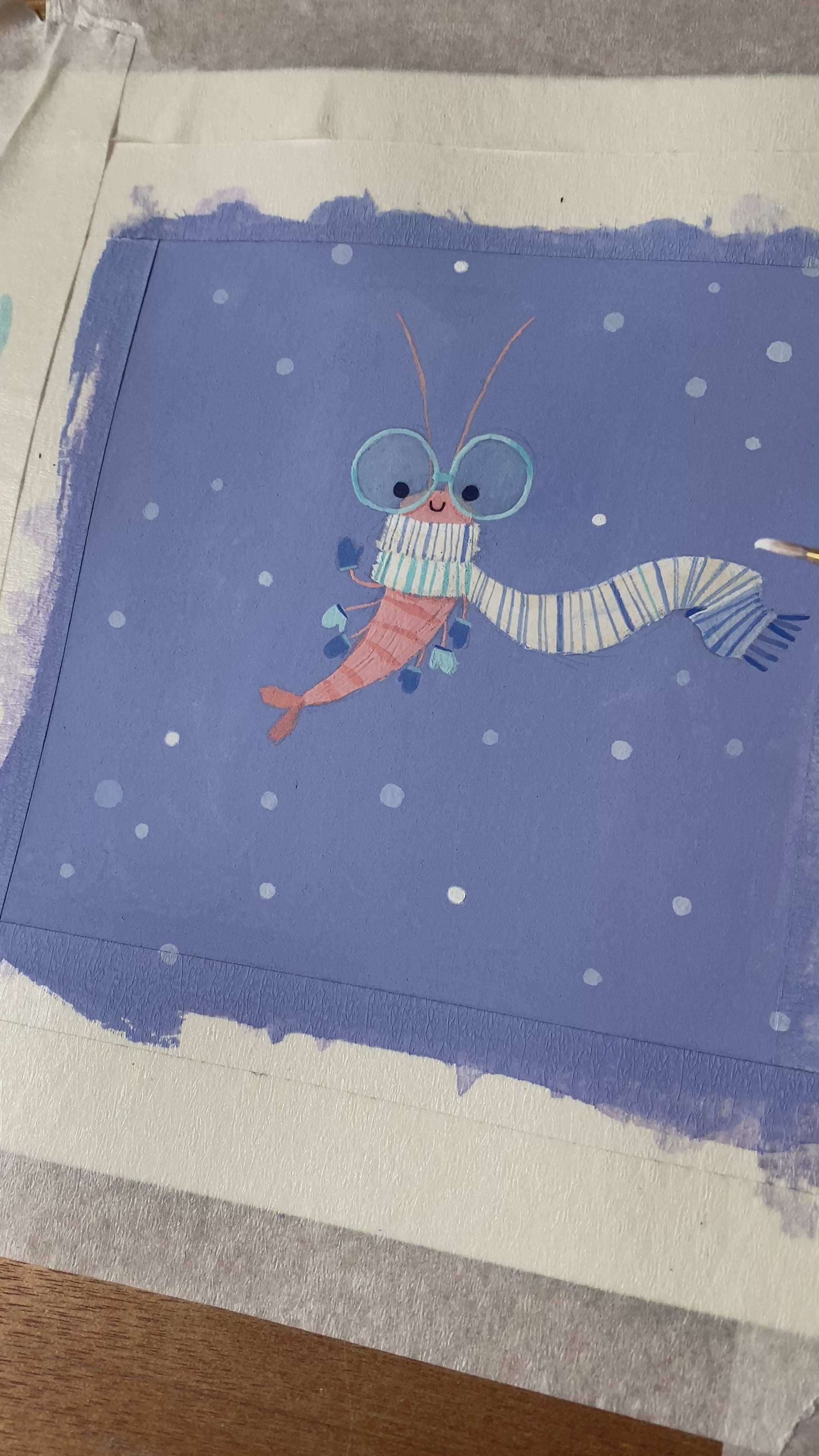 Max the Shrimp is cozying up for Winter, and so will you when you receive this cute and vibrant image of Max wearing a scarf and six cute mittens!